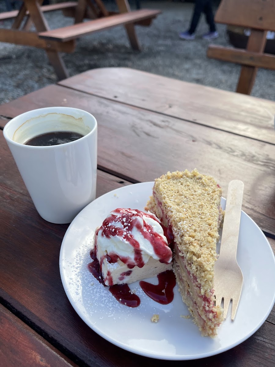Maria Manly echoed the sentiments with her review, stating it’s a “lovely place, very good food and coffee, and a nice atmosphere” that invites you to linger and embrace the natural beauty surrounding you. The quirky decorations, including statues on fence posts and views of the raspberry bushes, add a unique character to the café, making it a favorite for both locals and visitors.